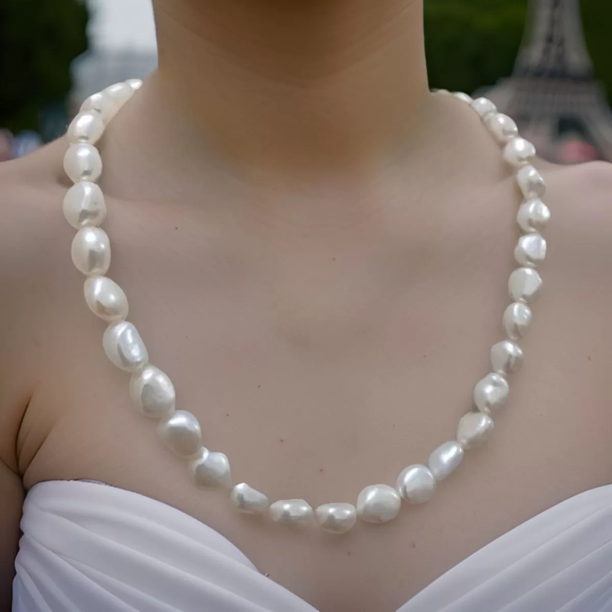 Step into sophistication with our White color Freshwater Pearl Necklace, a timeless adornment that exudes elegance with every lustrous pearl. Elevate your style effortlessly and make a statement of refined beauty with this exquisite piece, perfect for any occasion.